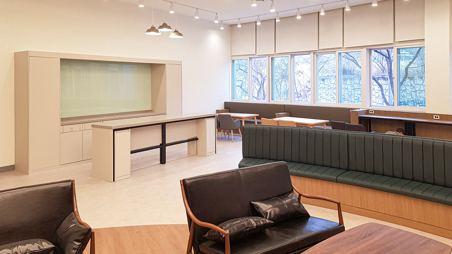 개인의 집중과 구성원 간의 소통이 자유롭게 이루어지도록 설계했으며, 차분한 색조를 사용하여 교육 기관의 정체성에 부합하는 쾌적한 환경을 완성했습니다.