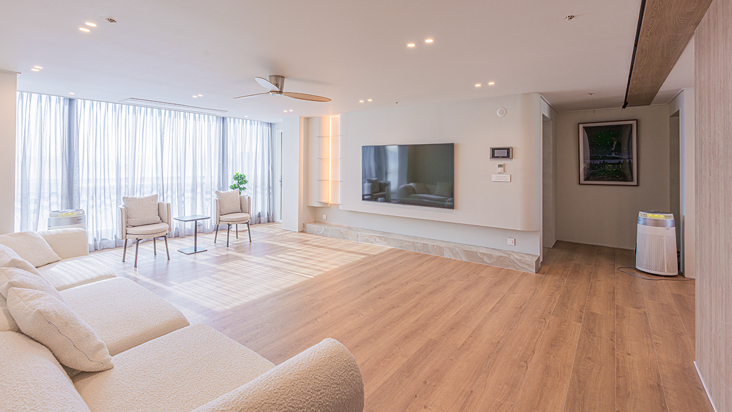 공사면적 : 46py공간을 가르는 유려한 나무 물결을 따라 시선이 머물면, 창밖의 계절과 실내의 온기가 기분 좋은 리듬으로 이어집니다.